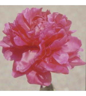 Fleur rouge cramoisi laissant apparaitre quelques étamines au coeur.